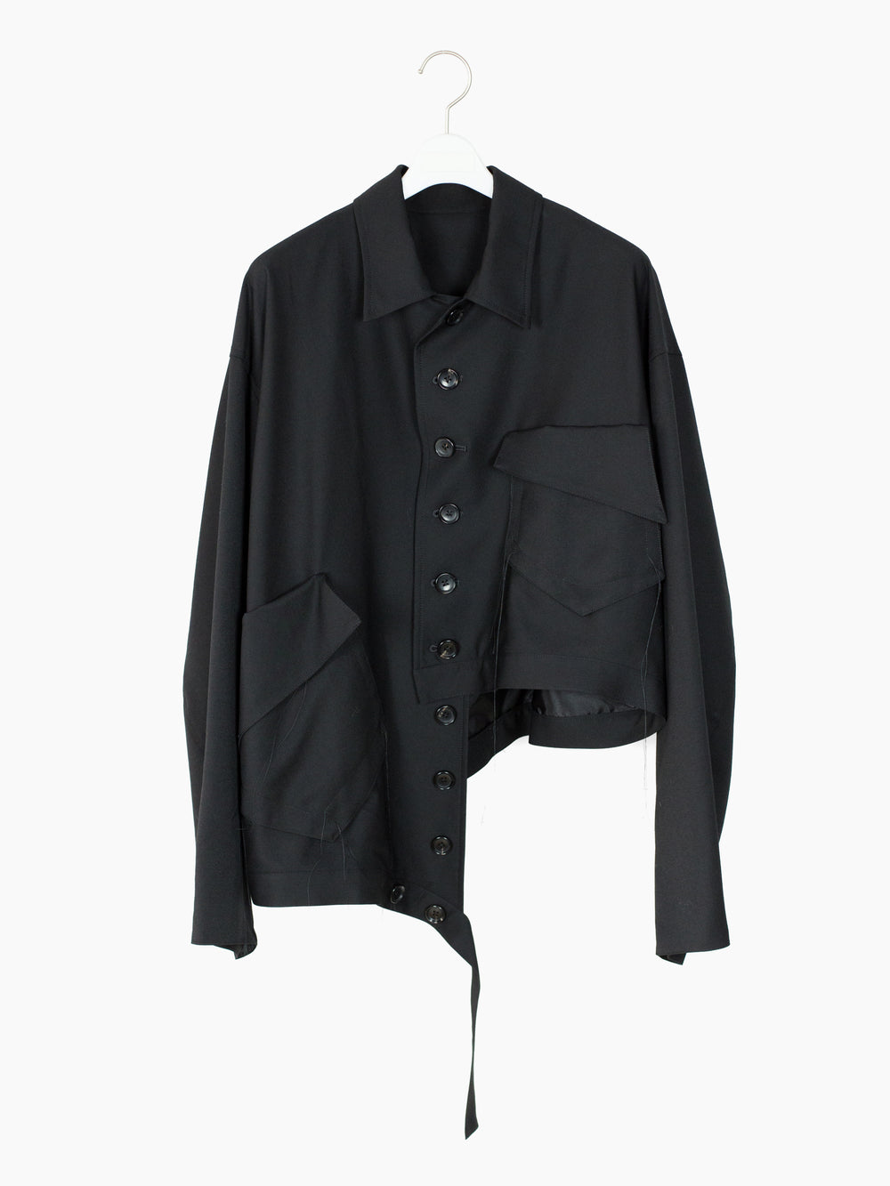 Fit Notes: Cut boxy and roomy in body and sleeves with asymmetrical, twisted and draped body. Accommodates up to a size larger. Very cropped on one side.